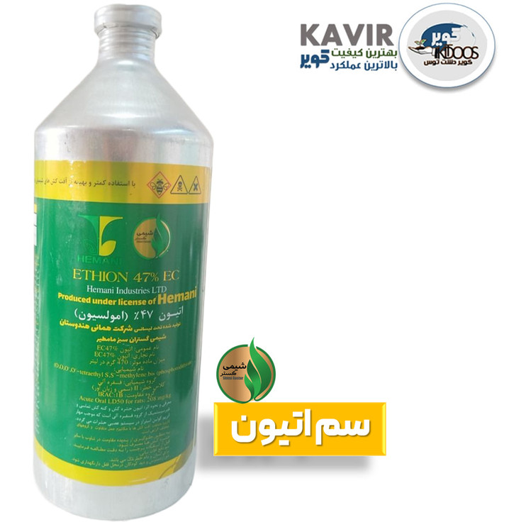 سم اتیون حشرهکش و کنه کش تماسی و غیرسیستمیک از گروه فسفره آلی است که توسط شرکت شیمی گستران سبز مامطیر تولید میشود. این سم موجب مهار آنزیم کولین استراز در سیستم عصبی حشرات شده و در نتیجه اثر مرگآوری دارد. اتیون اثر ضربهای قوی و دوره حفاظتی متوسط دارد.