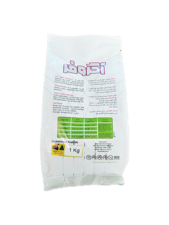 این کود حاوی عناصر ریز مغذی می باشد،عناصر میکرو نقش بسزایی درفتوسنتز و سلامت گیاه دارد.