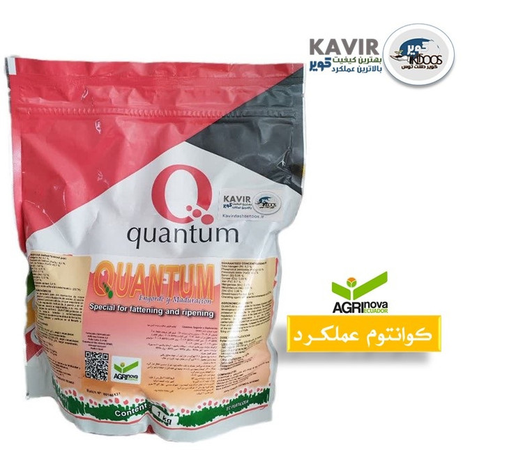 کوانتوم، یک کود NPK است که به صورت میکروگرانول محلول در آب و حاوی غلظت بالایی از پتاسیم ارائه می شود. این کود به وسیله عناصر کلاته با EDTA و هورمون طبیعی غنی شده است. کوانتوم برای استفاده در اکثر مراحل رشد گیاه و قبل از ایجاد شرایط استرس مناسب است و به دلیل جذب و متابولیزه شدن سریع نتایج سریع و مؤثری دارد. پتاسیم در مکانیزم تنظیم آب گیاهان، تشکیل پروتئین، تولید نشاسته و سلولز از کربوهیدرات ها، تنفس سلولی، شکل گیری بسیاری از آنزیم ها، حمل و نقل محصولات فتوسنتز از طریق بافت آبکش و توزیع آن ها به اندام های گیاه، مقاومت به خشکی و بیماری ها، افزایش مقاومت مکانیکی ساقه، تقویت سیستم ریشه، فرآیند پرکردن و رسیدن میوه نقش دارد.